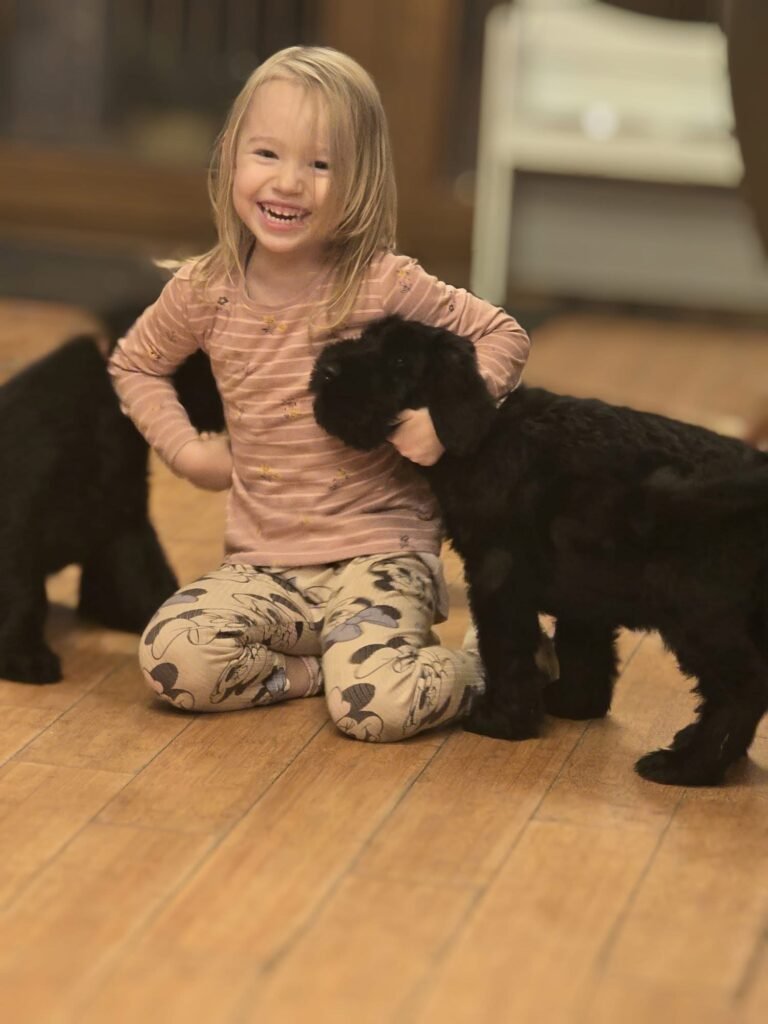 • Family Raised: Puppies are born and raised in our home, not in kennels. They’re socialized with children, adults, and other animals to ensure well-adjusted temperaments.